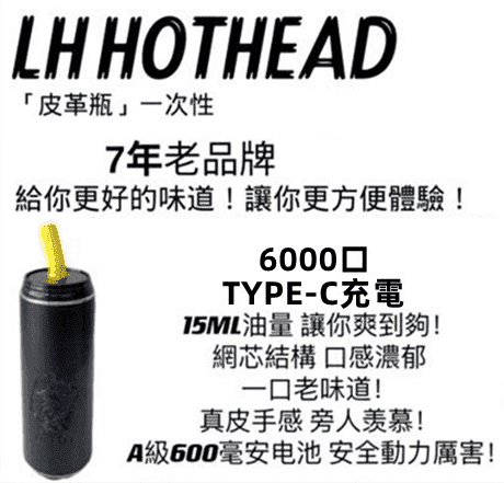 LH HOTHEAD皮革瓶電子煙可充電一次性拋棄式6000口